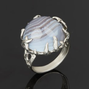 Кольцо агат голубой Намибия (серебро 925 пр. родир. бел.) размер 18,5