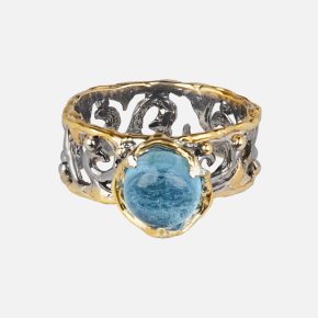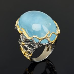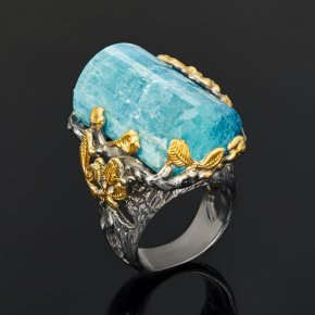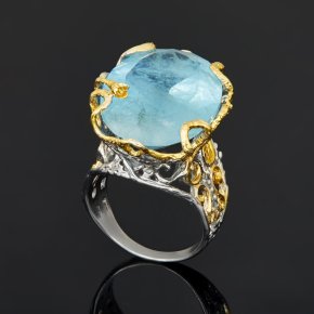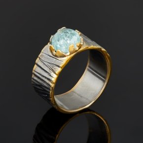 Кольцо аквамарин Бразилия (серебро 925 пр. позолота, родир. черн.) размер 17,5