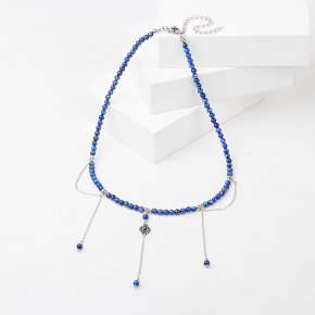 Чокер лазурит Афганистан (сталь хир.) 4 мм 37 см (+7 см)
