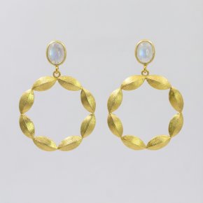 Серьги лунный камень (адуляр) Индия (латунь позолота)
