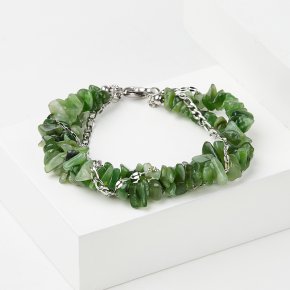 Браслет нефрит зеленый Россия (сталь хир.) 12 мм 17 см (+3 см)