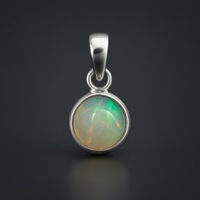 Кулон опал благородный белый Эфиопия (серебро 925 пр. родир. бел.) круг