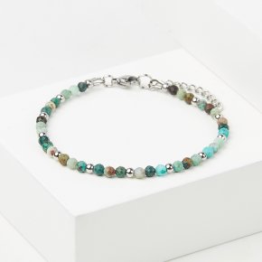 Браслет хризоколла Конго (сталь хир.) огранка 3 мм 16 см (+3 см)