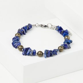 Браслет микс лазурит, пирит (сталь хир.) 6 мм