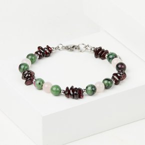 Браслет микс гранат, розовый кварц, цоизит (сталь хир.) 6 мм