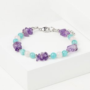 Браслет микс амазонит, аметист, розовый кварц (сталь хир.) 6 мм