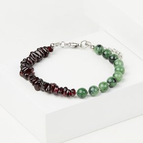 Браслет микс гранат, цоизит (сталь хир.) 6 мм