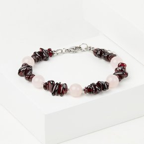 Браслет микс гранат, розовый кварц (сталь хир.) 8 мм