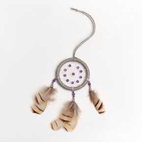 Ловец снов аметист Бразилия (биж. сплав, текстиль, перо натур.)