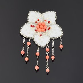Брошь коралл розовый Индонезия (сталь хир., текстиль) (булавка)