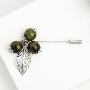 Брошь яшма зеленая Мадагаскар (биж. сплав) (булавка)