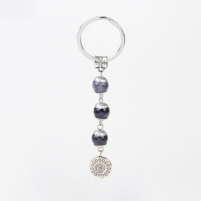 Брелок иолит (кордиерит) Индия (сталь хир., биж. сплав) 7 см