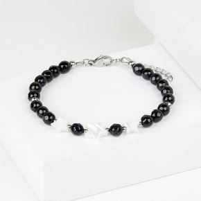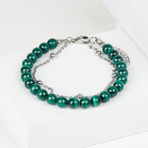 Браслет микс малахит, перламутр (сталь хир.) 16 см (+3 см)