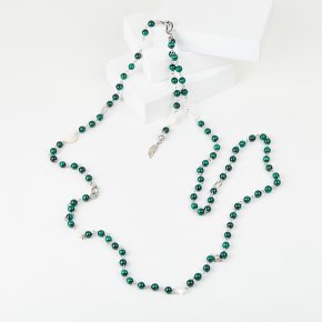 Колье микс малахит, перламутр (сталь хир.) 124 см (+7 см)