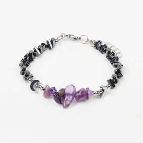Браслет микс аметист, гематит (сталь хир.) 17 см (+3 см)