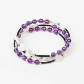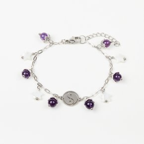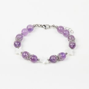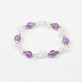 Браслет микс аметист, горный хрусталь (сталь хир.)