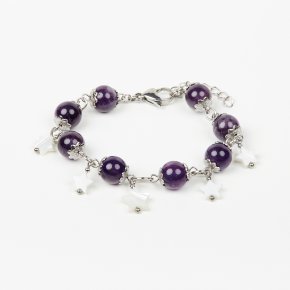 Браслет микс аметист, перламутр (сталь хир.) 17 см (+3 см)