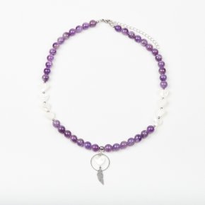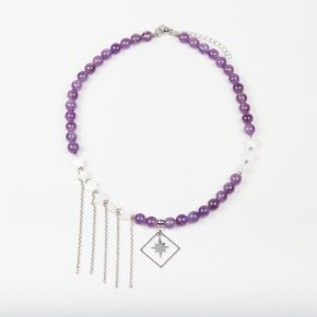 Бусы микс аметист, горный хрусталь (колье) 46 см (+7 см) (сталь хир.)