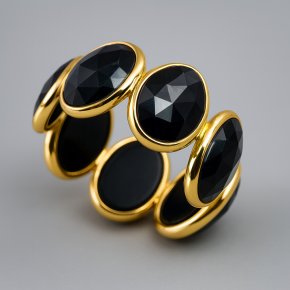 Кольцо оникс черный Пакистан (латунь позолота) огранка