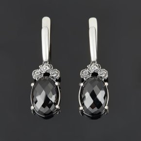 Серьги шпинель черная Шри Ланка (серебро 925 пр. оксидир.) огранка