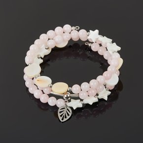 Браслет микс перламутр, розовый кварц (сталь хир.)