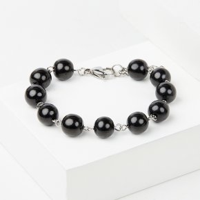 Браслет обсидиан серебристый Мексика 14 мм 18 см