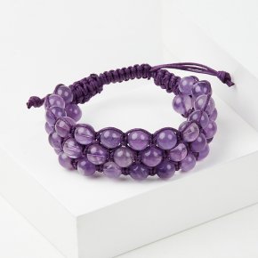Браслет аметист Бразилия (текстиль) шамбала 8 мм 17 см (регулируемый)