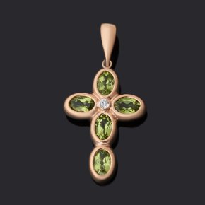 Кулон хризолит США (серебро 925 пр. позолота) крест огранка
