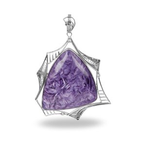 Кулон празиолит Бразилия (серебро 925 пр. родир. бел.) круг огранка