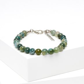 Браслет агат моховой Индия (сталь хир.) 6 мм 17 см (+3 см)