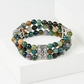 Браслет агат моховой Индия (сталь хир.) 6 мм