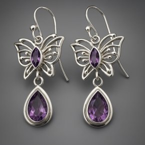 Серьги аметист Бразилия (серебро 925 пр. оксидир. родир. бел.)