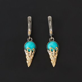 Серьги бирюза Тибет (серебро 925 пр. позолота, родир. черн.)