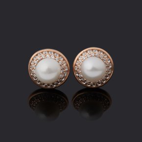 Серьги жемчуг белый Гонконг (серебро 925 пр. позолота) пуссеты