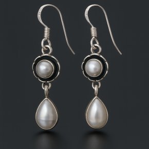 Серьги жемчуг серый Гонконг (латунь оксидир., посеребр.)