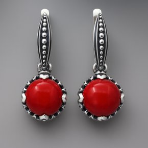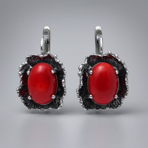 Серьги коралл красный Индонезия (серебро 925 пр. оксидир.)