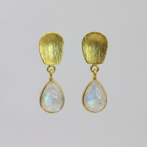 Серьги лунный камень (адуляр) Индия (латунь позолота)