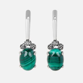 Серьги малахит Конго (серебро 925 пр. родир. бел.)