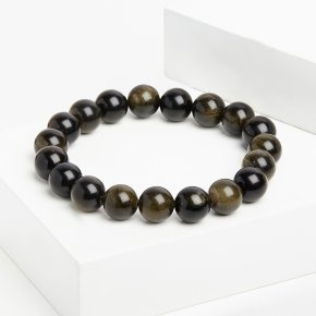 Браслет обсидиан золотистый Мексика 12 мм 18 см