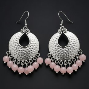 Серьги розовый кварц Мадагаскар (биж. сплав, сталь хир.)