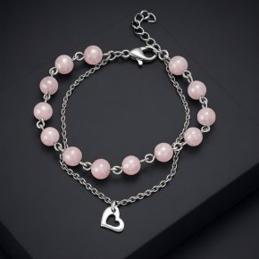 Браслет розовый кварц Бразилия 6 мм 16 см (+3 см) (сталь хир.)
