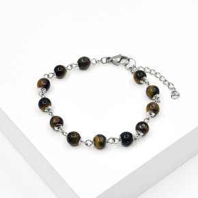 Браслет тигрово-соколиный глаз ЮАР 6 мм (сталь хир.)