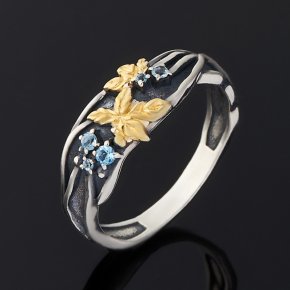 Кольцо топаз голубой Бразилия (серебро 925 пр. позолота) огранка размер 17,5