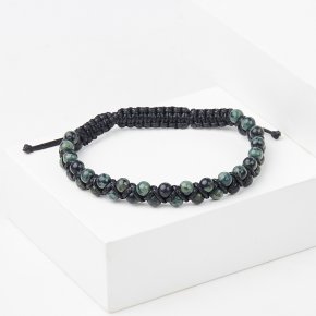 Браслет яшма зеленая Мадагаскар (текстиль) шамбала 8 мм (регулируемый)