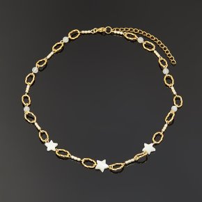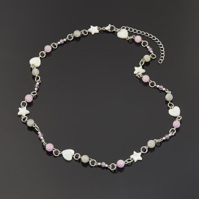 Бусы микс кунцит, перламутр (сталь хир.) (цепочка) (колье) 43 см (+7 см)