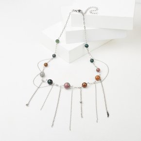 Бусы агат моховой Индия (сталь хир.) (колье) 42 см (+7 см)