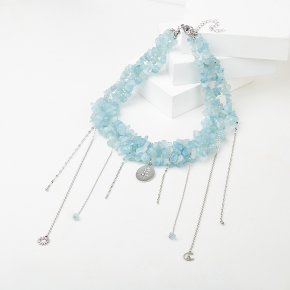 Чокер аквамарин Бразилия (сталь хир.) (колье) огранка 3 мм 39 см (+7 см)