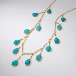 Бусы бирюза Тибет (цепочка) огранка 47 см (+5 см) (латунь позолота)