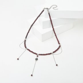 Чокер гранат альмандин Индия (сталь хир.) 7 мм 39 см (+7 см)