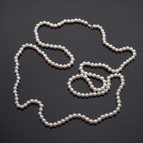 Бусы жемчуг белый Гонконг длинные 7 мм 90 см (биж. сплав)